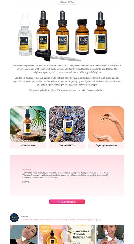 ELK Labs is a skincare brand based in Beverly Hills, California, dedicated to delivering high-performance, science-backed skincare solutions. Founded on principles of compassion, vision, integrity, and quality, ELK Labs offers a range of premium serums formulated to address various skin concerns.
