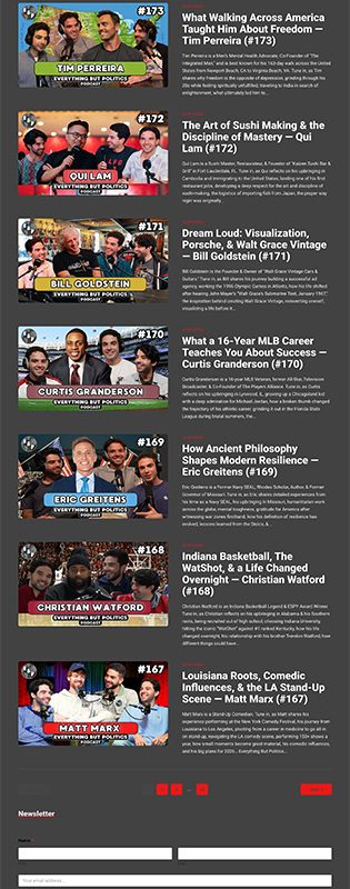 Everything But Politics is a podcast that delves into the lives and experiences of individuals from various walks of life, focusing on their personal stories, careers, and passions—excluding political discussions. Hosted by the Lieser Brothers, the show aims to foster understanding and connection by highlighting the human aspects that unite us all.