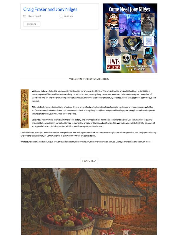 Lewis Galleries is a premier art destination in Simi Valley, California, offering a curated collection of fine art, animation art, and collectibles. Located at 1555 Simi Town Center Way, Unit 130, the gallery is renowned for its diverse selection, featuring works from iconic artists such as Chuck Jones, Dr. Seuss, Alex Ross, and Michael Provenza. […]